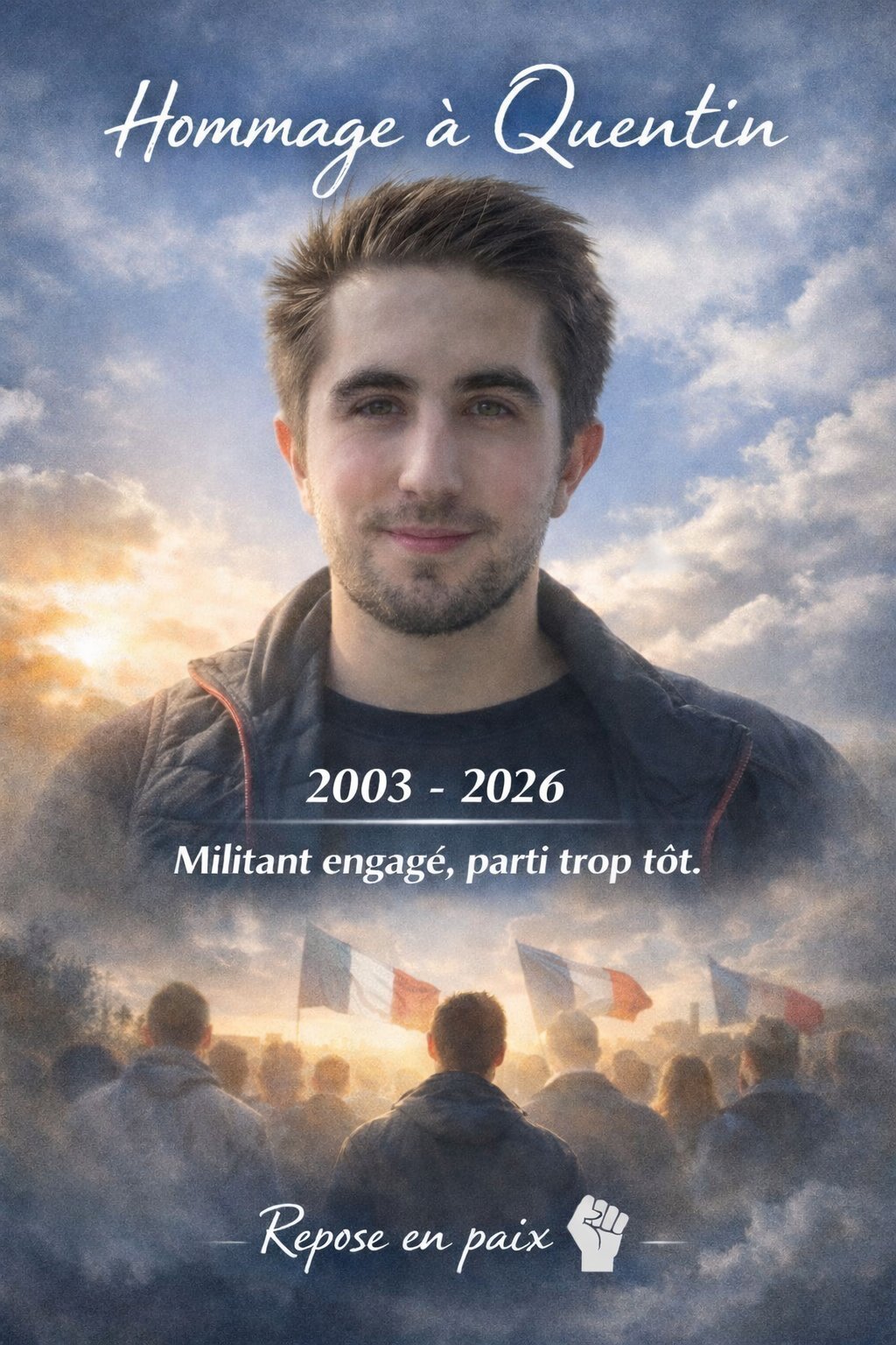 "Raphaël Arnault a donc accepté de répondre à nos questions sur ce drame [...] profondément heurté par cet accident, il reste cependant lucide "Accuser la jeune garde est un non-sens, il s'agit d'un mouvement pacifique, je le dis et je le répète, les vrais responsables, c'est Némésis, pas la jeune garde, et encore moins la France Insoumise"
