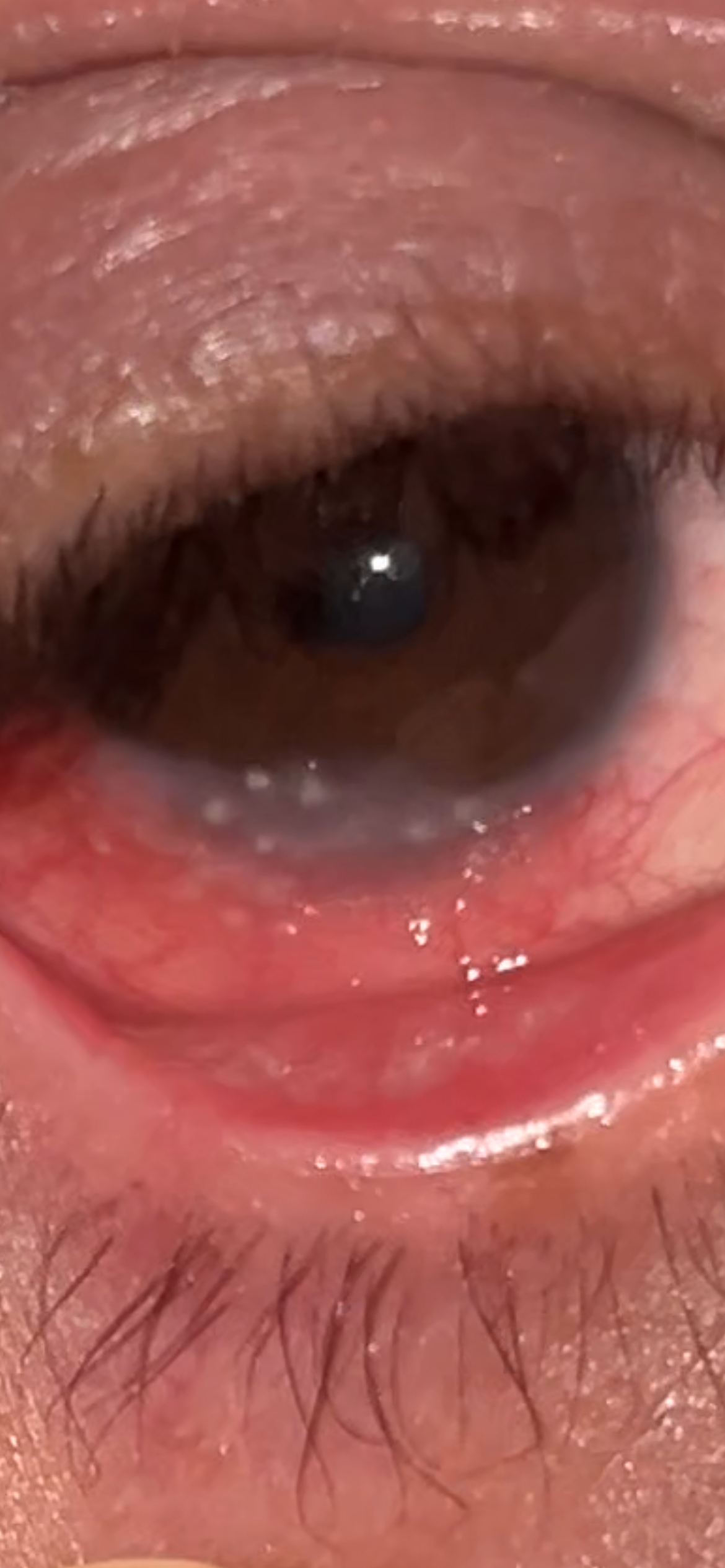 Je commence à flipper voud savez ca peut etre quoi ces espèces de points blanc en bas de ma cornee ?