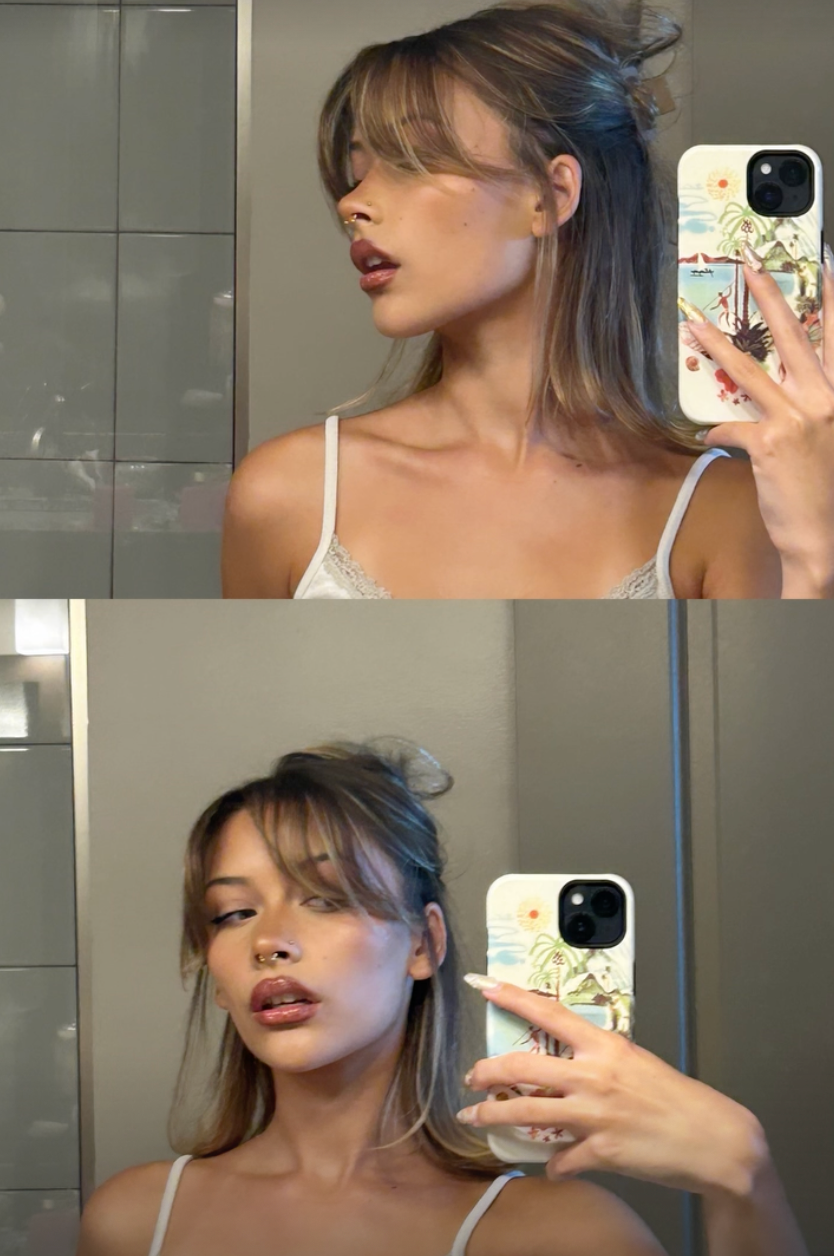 Les photos sont encore retouchées + il y a un truc qui me gêne au niveau du visage qui fait trop masculin.