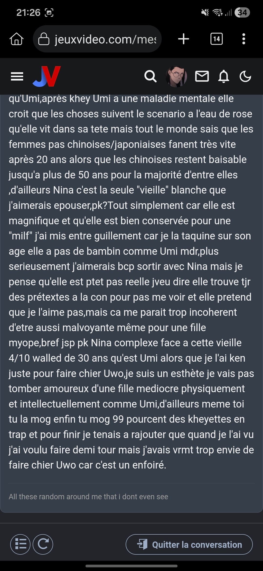 Le 13 avril 2026 à 21:41:13 :Le 13 avril 2026 à 21:26:57 :Il a totalement BRISÉ UMI-> Je fais la maline alors qu'il passe son temps à boucler sur moi à 3h du mat, il est totalement brisax