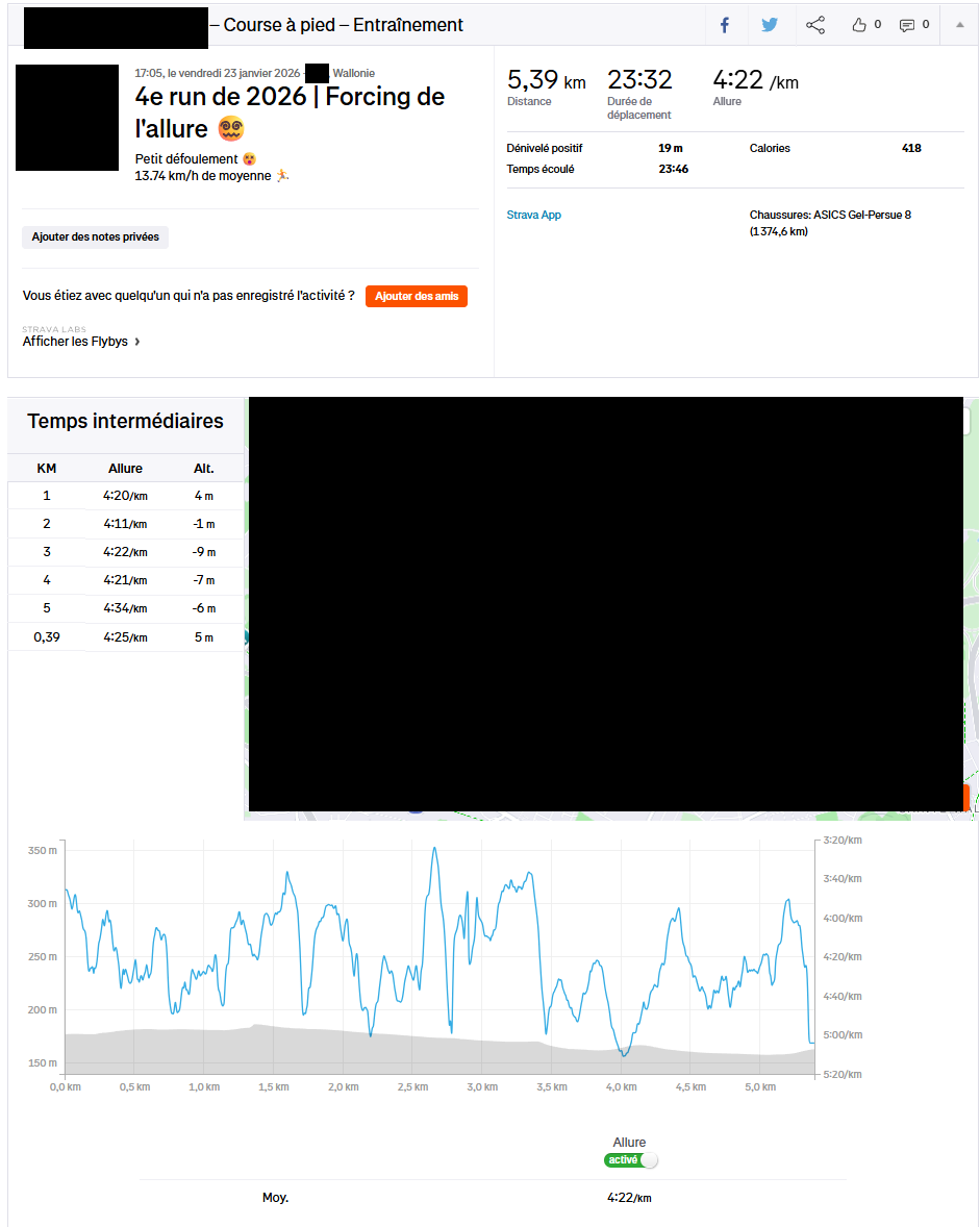 Mais c'est comme ça, sinon je me bougerai pas, donc je me force pas a courir à tout pris tout au long de l'année, mais par période je me motive à garder un petit rythme de course et à perf
