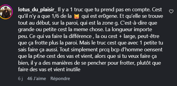 Un énième combat d'abrutis entre ceux qui pensent qu'avoir 20cm fait automatiquement d'eux des tombeurs et de bons baiseurs et ceux (dont des meufs) qui vont nier purement et simplement qu'avoir une taille au moins standard ne contribue pas au plaisir de la meuf...