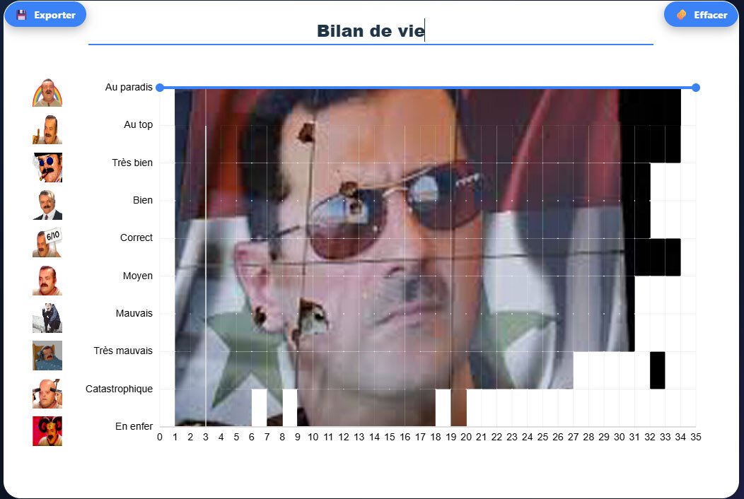 Pour ceux qui ont une vie de merde, je me demande si ça n'aide pas à relativiser en voyant qu'il y a eu de bons moments... Sauf pour ceux qui ont une ligne rouge qui se mêle à l'axe.