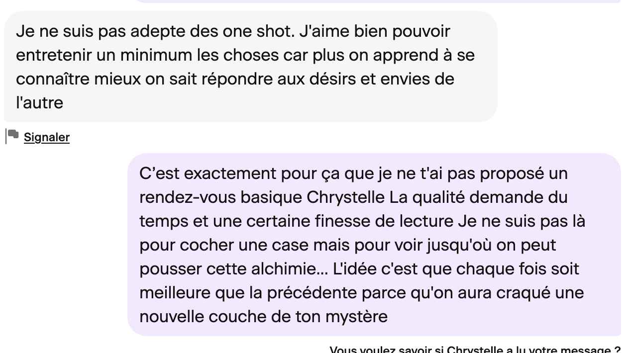 Elle se raccroche déjà aux branches et t'expose ses insécurités "je veux pas un autre one shot"