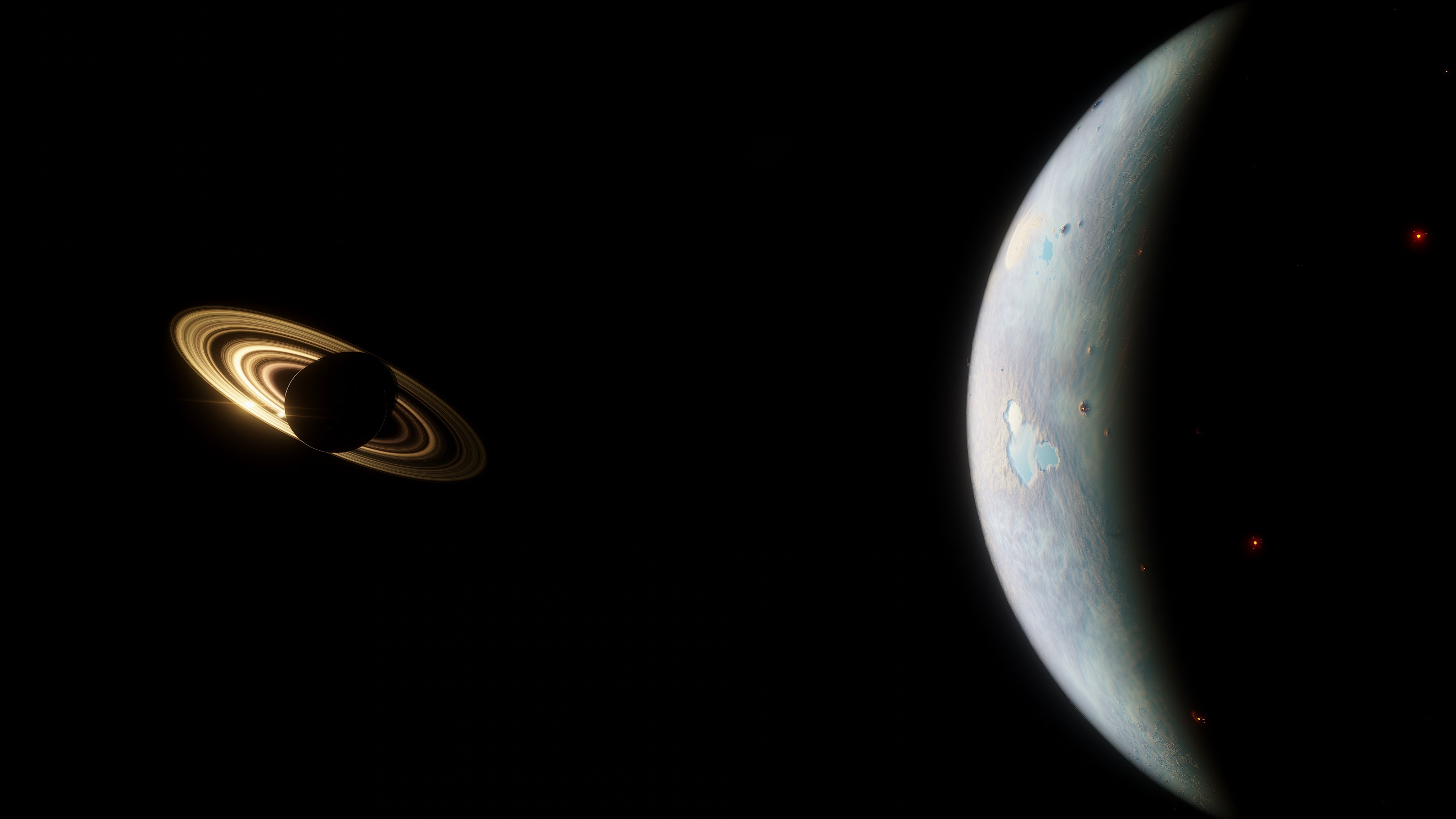Une planète random avec de jolis anneaux ainsi que son satellite (image du milieu) :