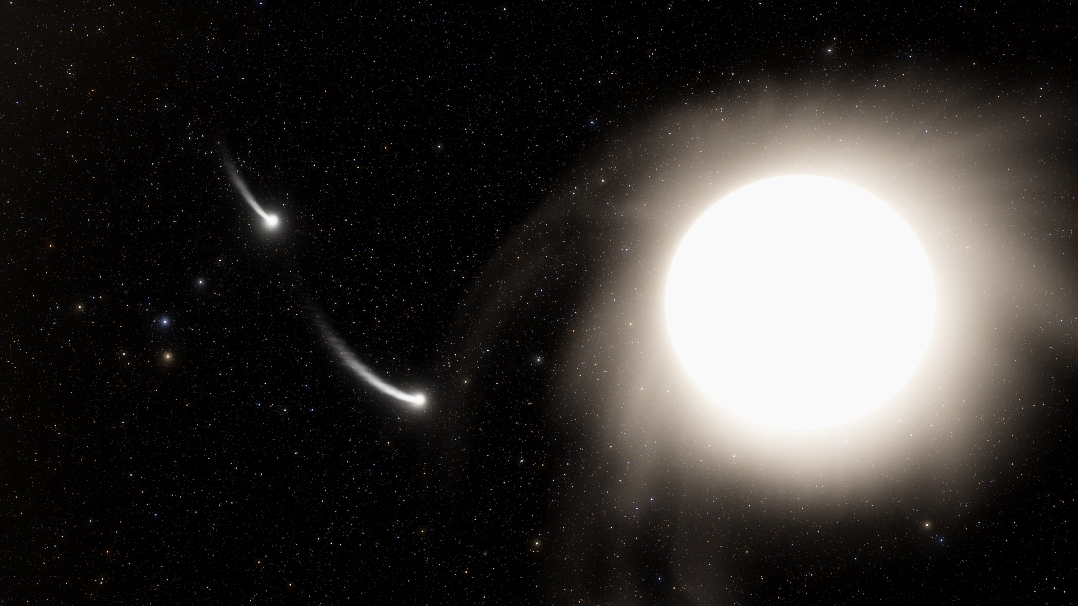 Un trou noir aux abord du trou noir supermassif M87 : Deux géantes gazeuses se faisant évaporer par leur étoile :