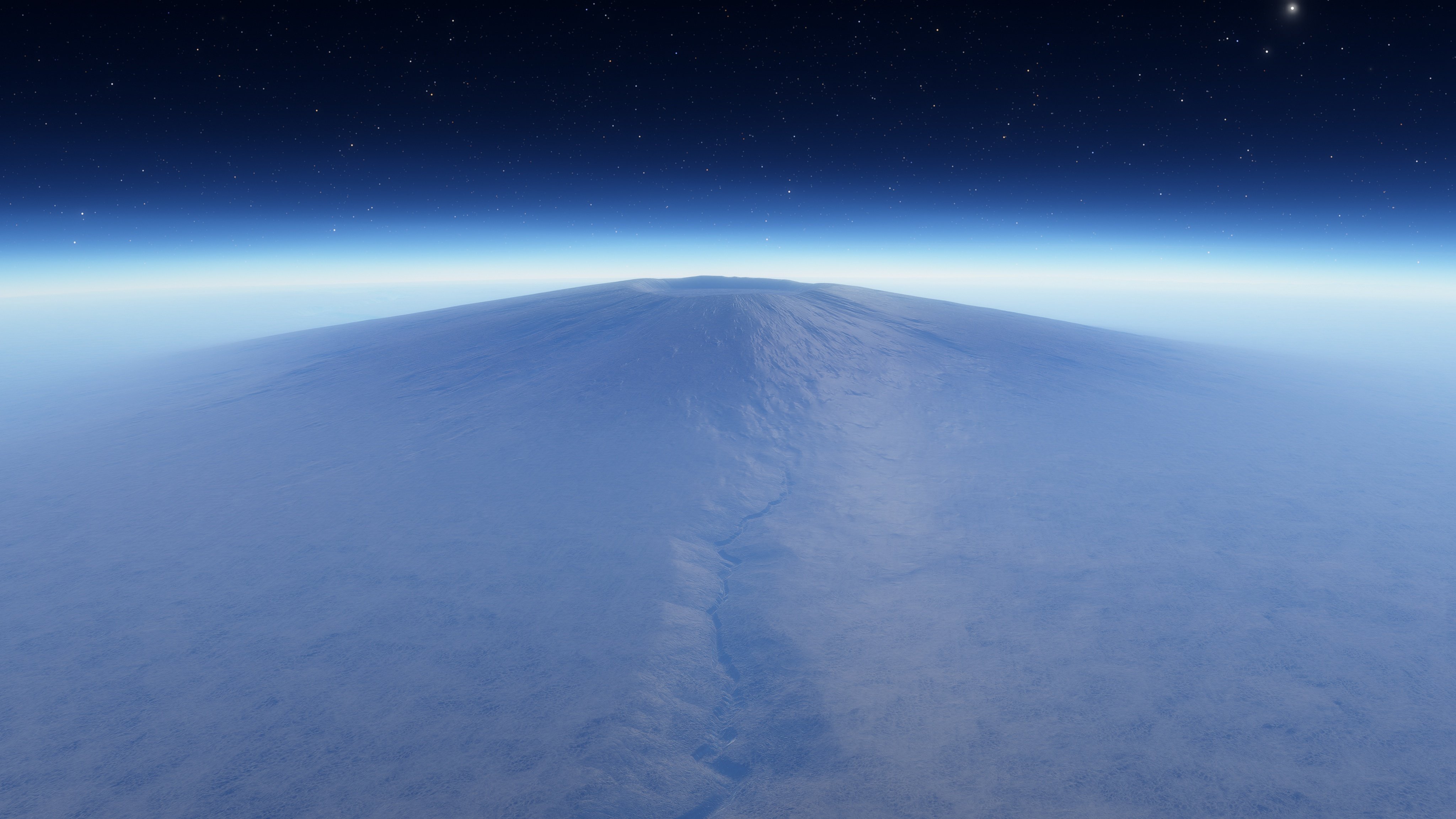 Un joli paysage et un immense volcan sur une planète random abritant une vie organique multicellulaire :