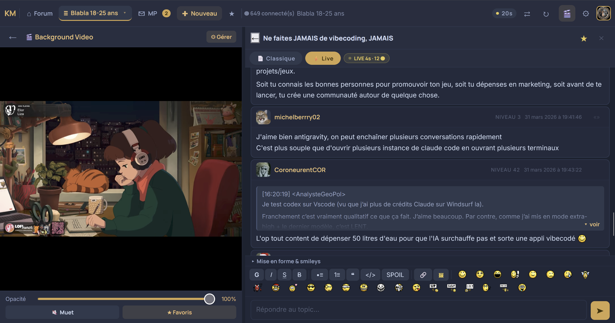 J'ai vibe code un user script pour voir facilement les messages en mode thread (finito les messages imbriqués illusibles) + un système de favoris de topics/forum/post