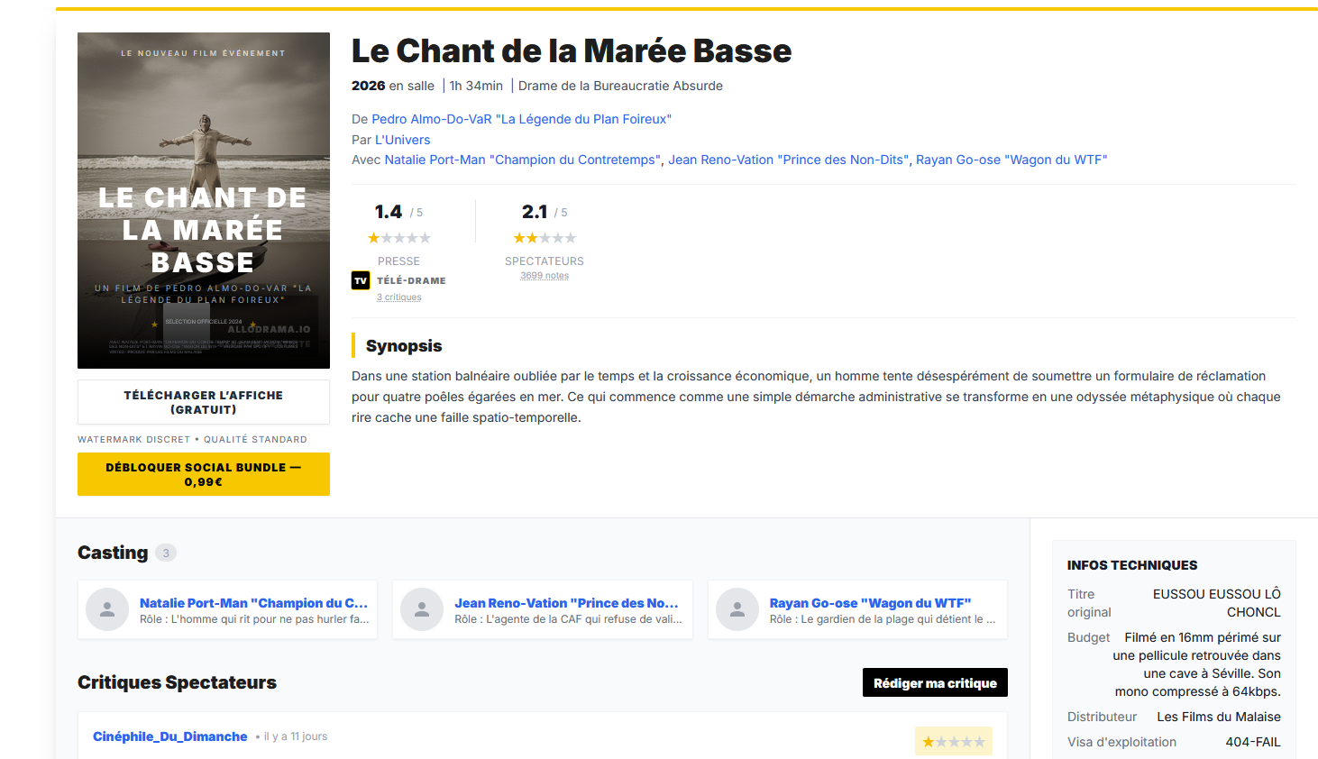 > > J’ai vibecode ça aussi : https://www.allodrama.io/