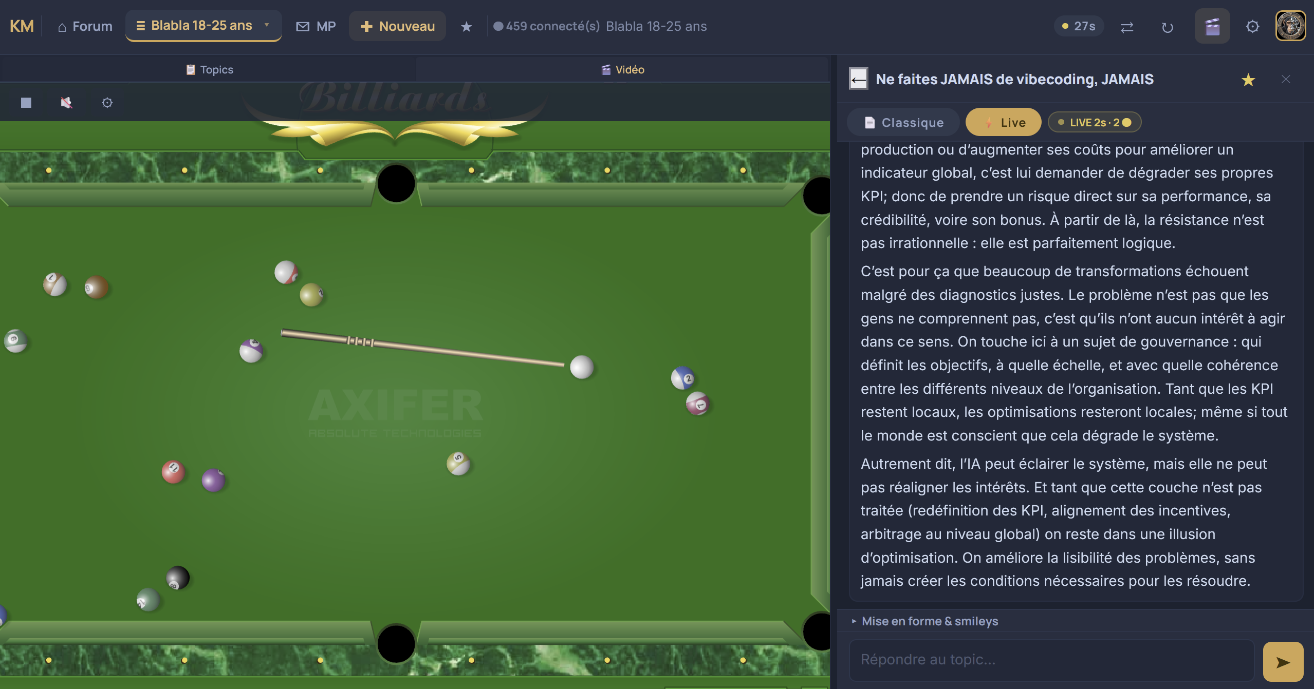 > > Le vibe coding pourrait bien me sortir de la rat race, je crois que je tiens un truc. On traverse un âge d'or du rapport capacité technique / coût économique des IA, c'est fabuleux d'avoir une telle puissance pour un coût aussi dérisoire.