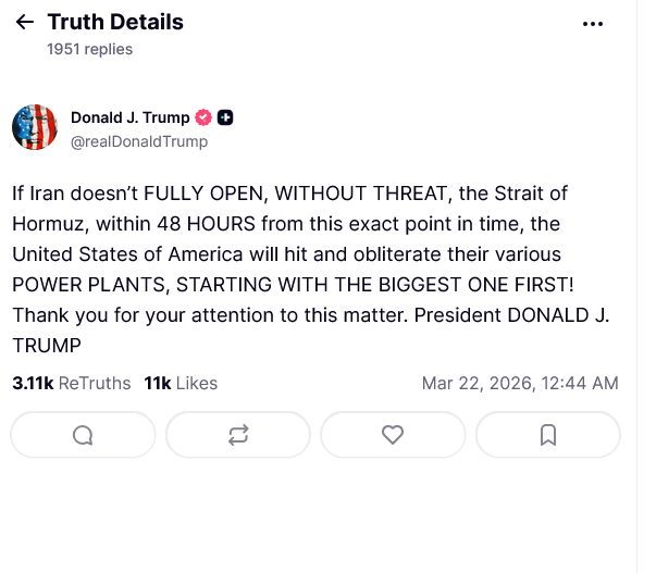 Le 22 mars 2026 à 01:55:45 :L’iran vient déjà de répondre.
