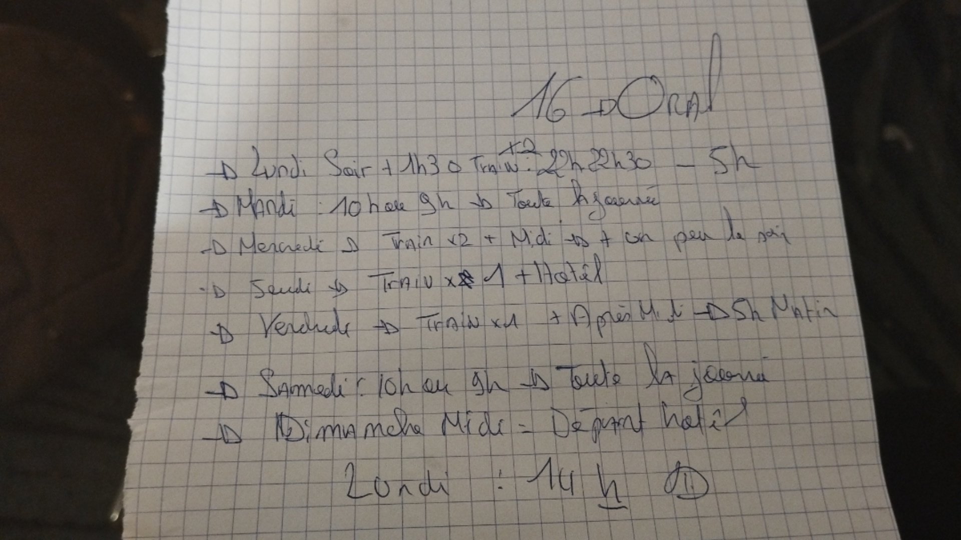 - Jeudi : Je peux réviser 1h30 dans le train du matin