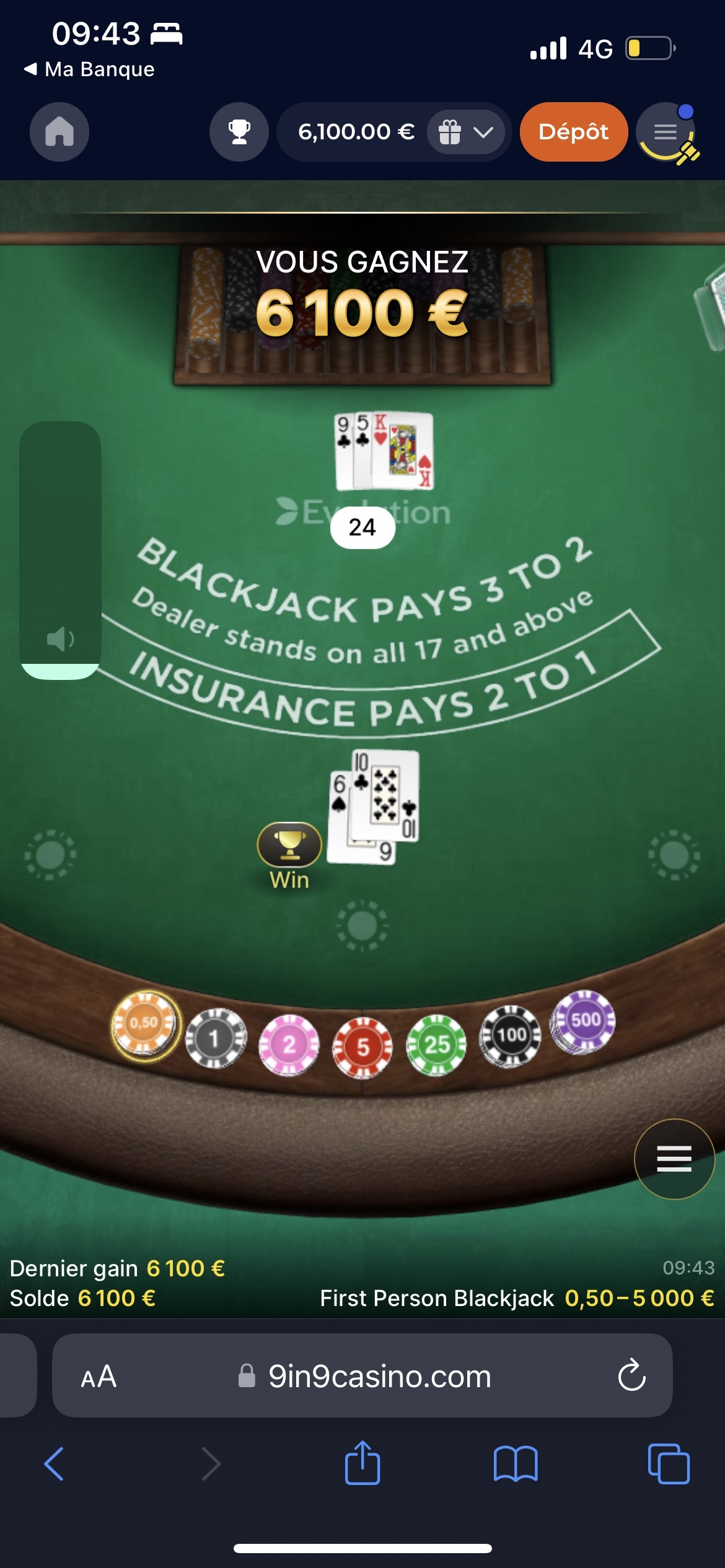J’ai tapé un all in hier sur un cas en ligne random BJ sans side bets