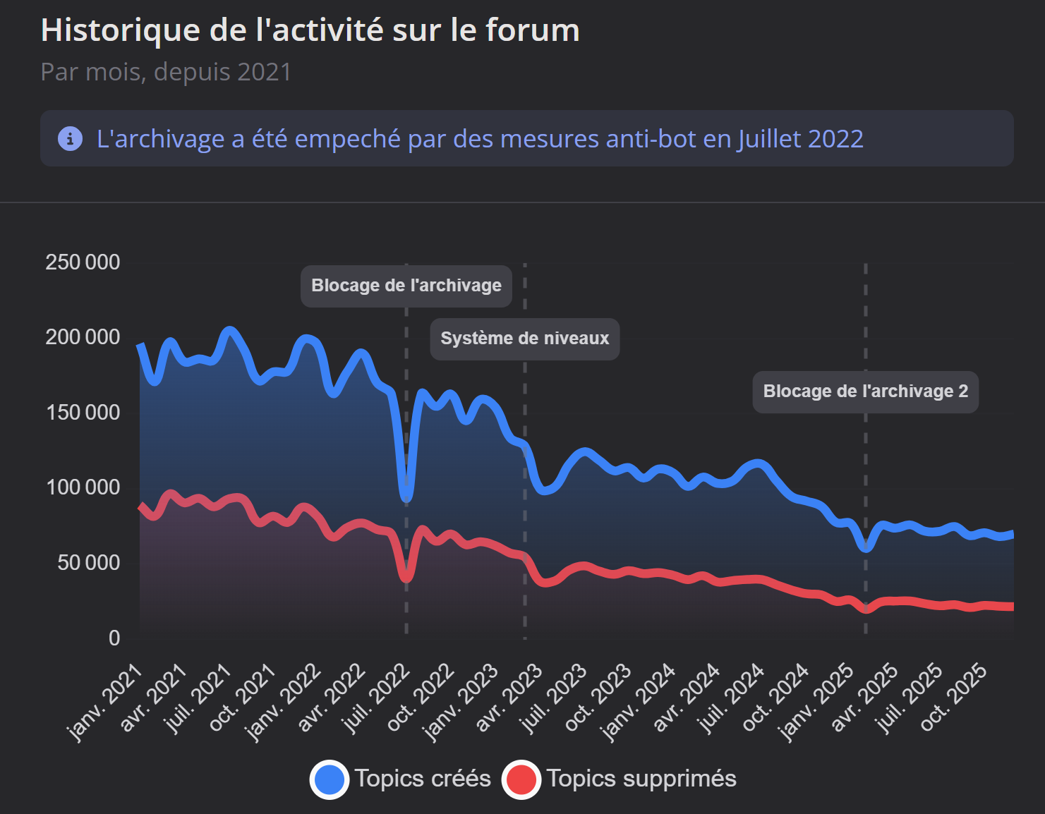 C'est pas strictement pareil que les messages / connectés mais ça donne une bonne idée, on est en gros sur une division par 3, ce qui correspond à ce qui est rapporté sur le nombre de connectés.