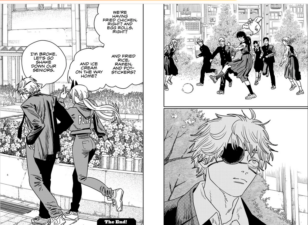 Il a juste eu la GROSSE flemme et a même laissé pochita dans le coeur de denji (sans dire pk) pour pouvoir continuer l'histoire si il a besoin de pognon un jour