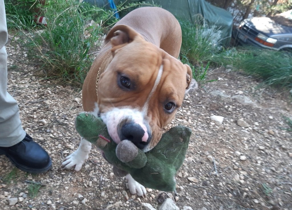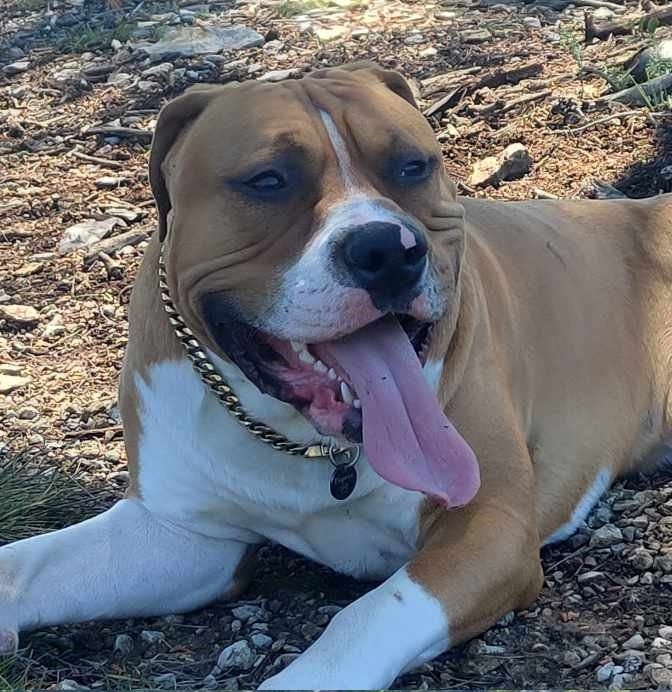 Mon croisé pit/bully/staff (je sais pas ,un pote l'a trouvé bébé dans la foret ) a :