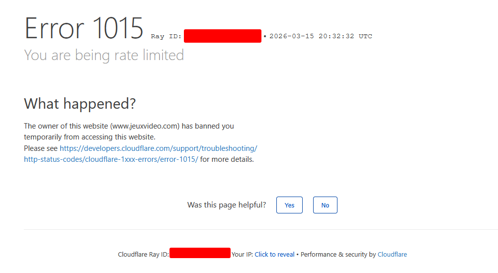 Maitenant cloudflare te met un rate limit, quel forum de merde, obligé d'utiliser un vpn