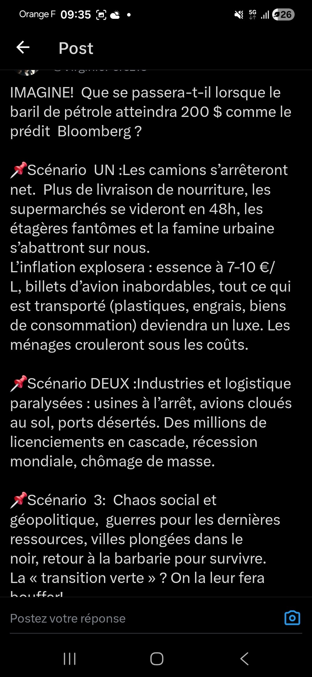 Oui sauf que marcher consomme des calories, donc de la nourriture, donc de l'énergie pétrolifère![]()