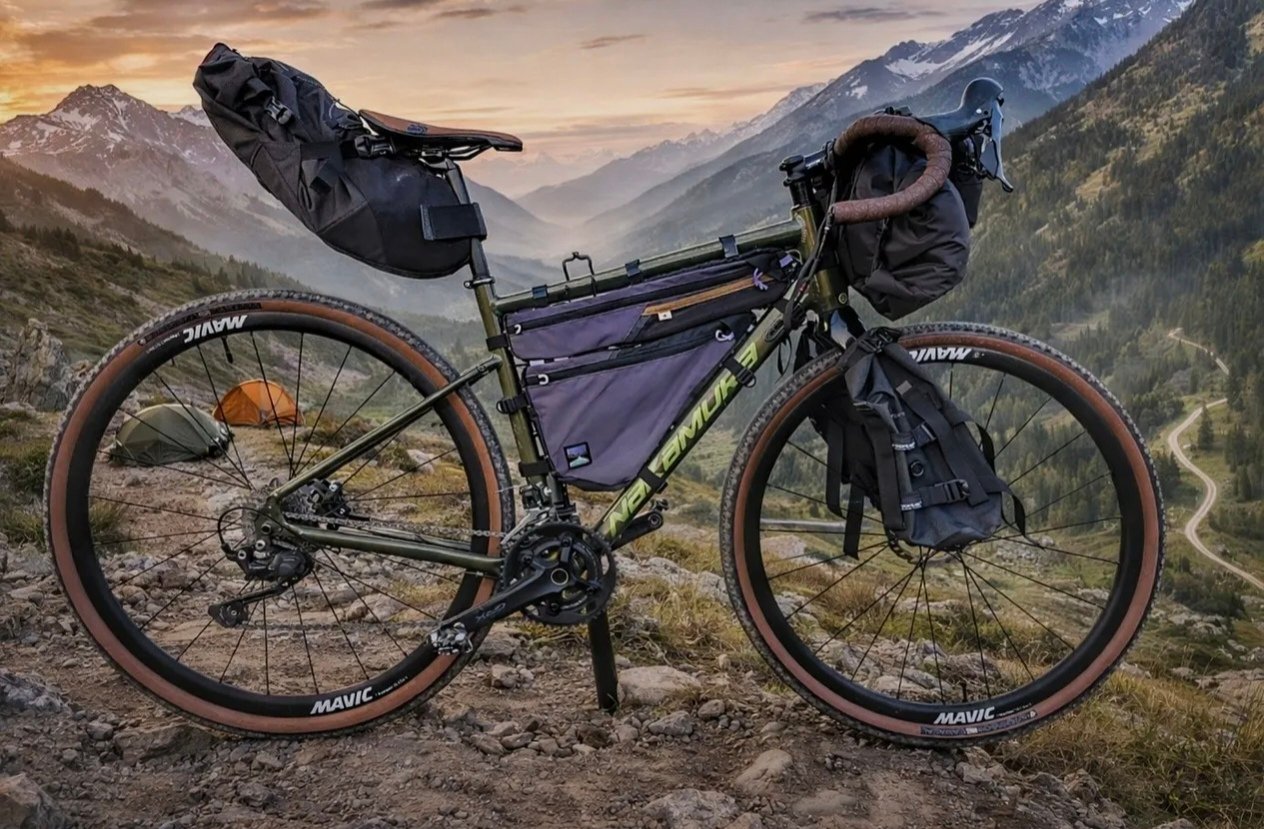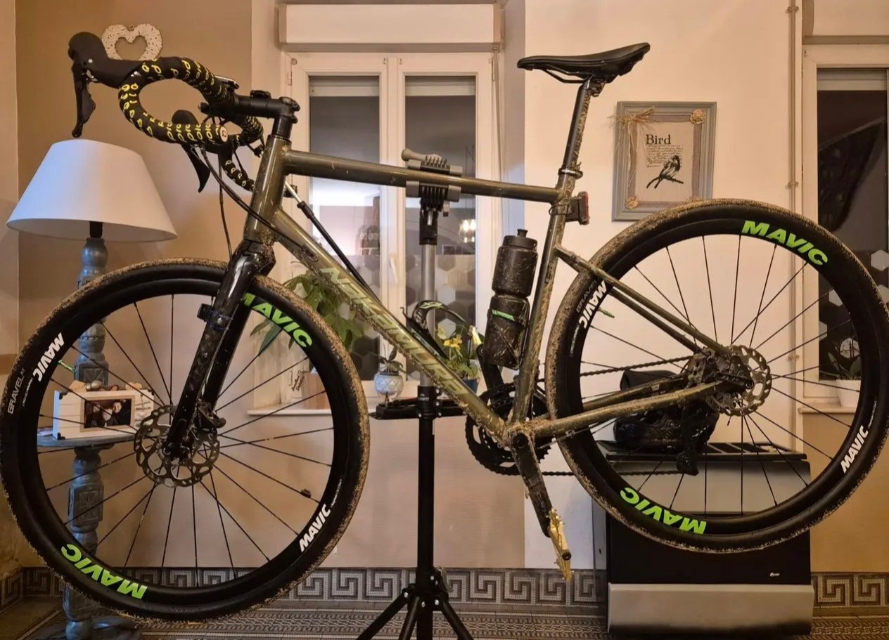 J'hesite entre un style gravel avec element marron ( selle, guidoline, flanc pneus ) ou plus moderne avec element vert fluo ou jaune pour contraster avec le vert du cadre et le noir