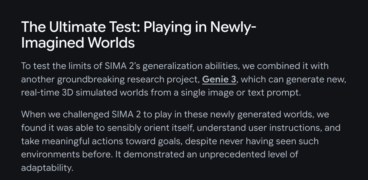 Leur IA est capable de jouer a un jeu vidéo qui vient d'être créer, donc sans recevoir de données d'autre joueurs puisqu'elle est la première a y jouer