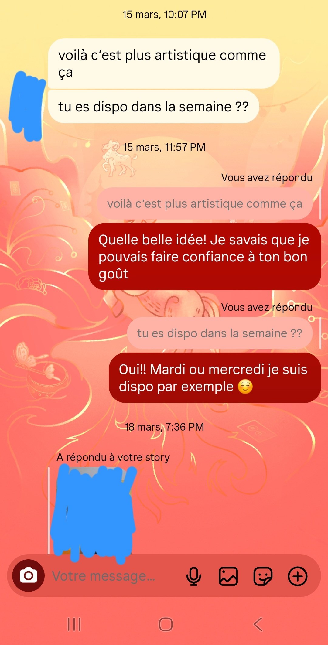 Et au moment de se voir une 4ème fois, je lui dis que je suis dispo mardi et mercredi et elle me ghoste jusqu'à mercredi et revient avec un "désolé" 😅