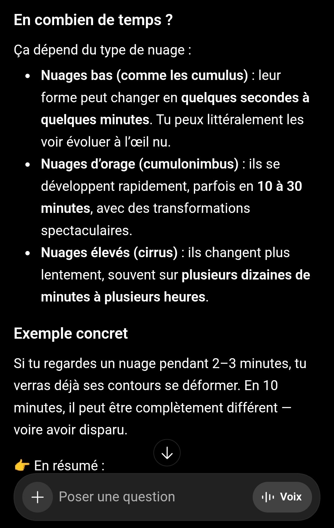 > > Ils vont à quelle vitesse les nuages à ton avis?