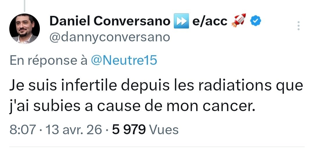 Mais depuis que son cancer est passé en stade 4 ça n'a plus aucun intérêt, il a lui même dit qu'il n'est pas du tout en position de faire des enfants si il ne sait même pas si il sera encore vivant dans 2-3 ans.